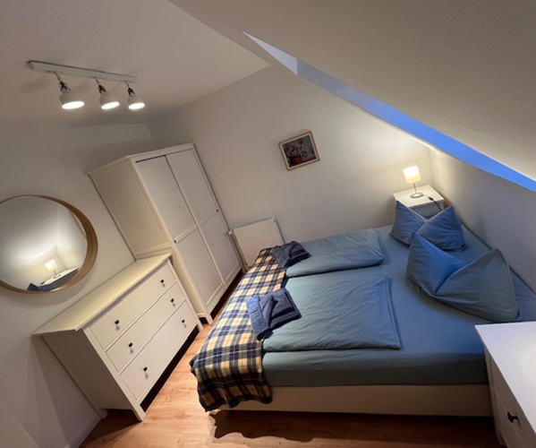 1 Wohnraum und 1 Schlafzimmer ( 1 Elternschlafzimmer mit Doppelbett. Das Appartement verfügt über 1 Bad mit Dusche und WC (DWC)